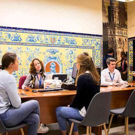 Школа испанского языка в Севилье расположена в красивом особняке и имеет зеленую террасу площадью 400 квадратных метров с захватывающим видом на город и Хиральду. Площадь школы составляет 1 200 м², на которых расположены 14 просторных классных комнат, современный компьютерный класс, укомплектованная библиотека, конференц-зал, общественные зоны и классический андалузский внутренний дворик, покрытый плиткой Triana.