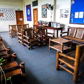 - Студенческая гостиная представляет собой открытую зону с удобными столами, стульями и небольшой библиотекой, где студенты могут проводить время между занятиями. Также здесь иногда предлагаются закуски по доступным ценам.